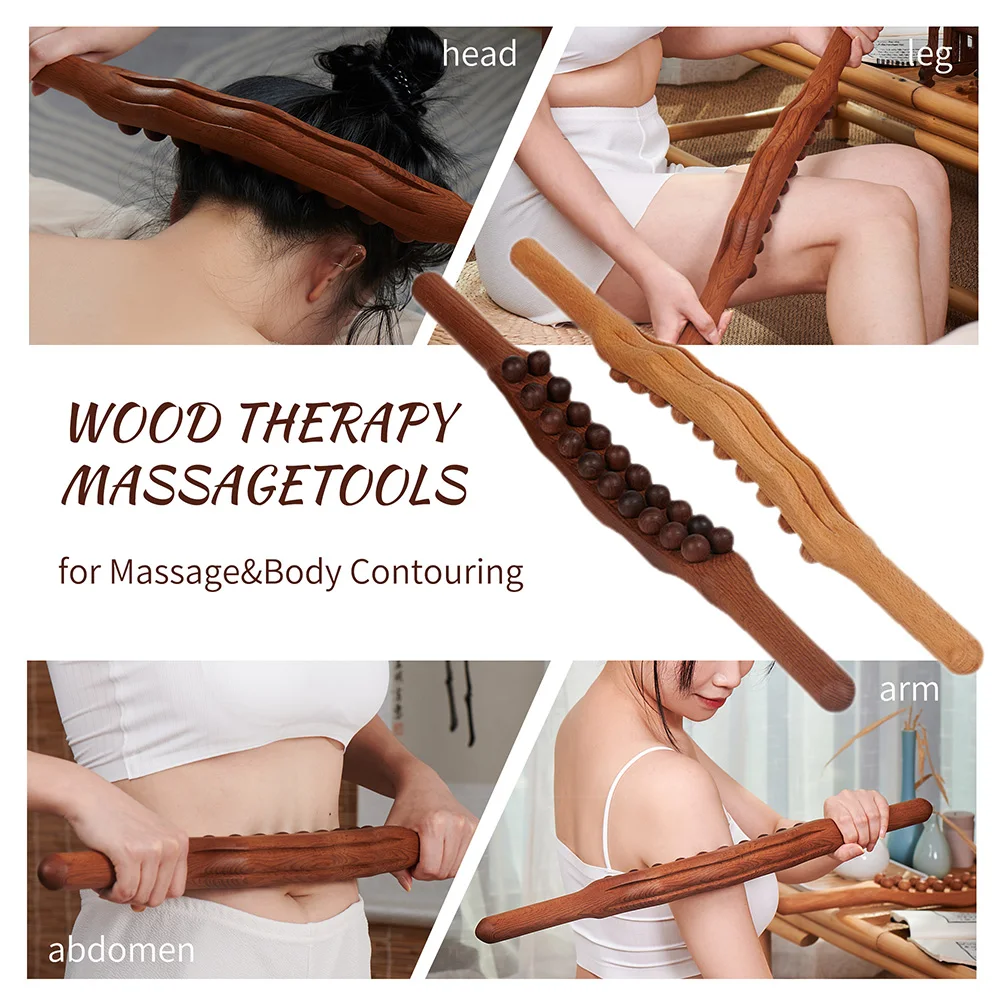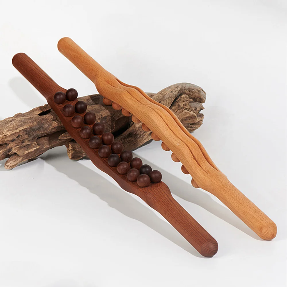20 Beads Rolling Pin Universal Back Needle Massage Tendons Beech Wood Scraping Stick Point Treatment Gua Sha Relax Therapy Tools
