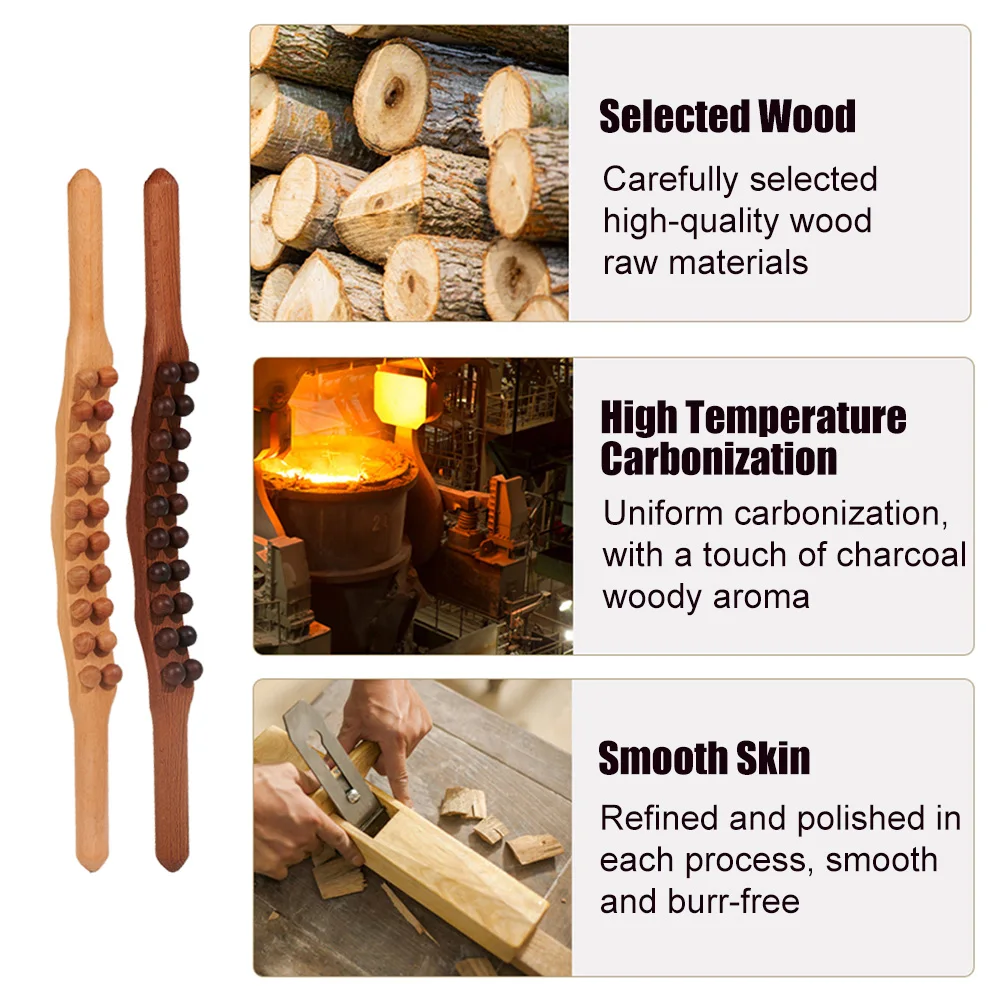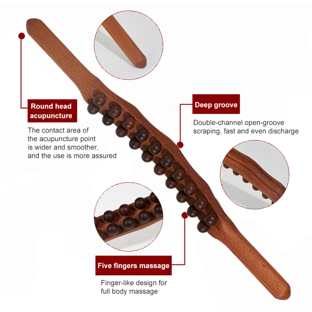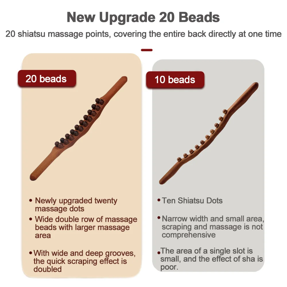 1. [Comfortable Massage Beads] The wooden scraping stick has rounded massage beads without burrs, embedded in the stick without dropping the beads.