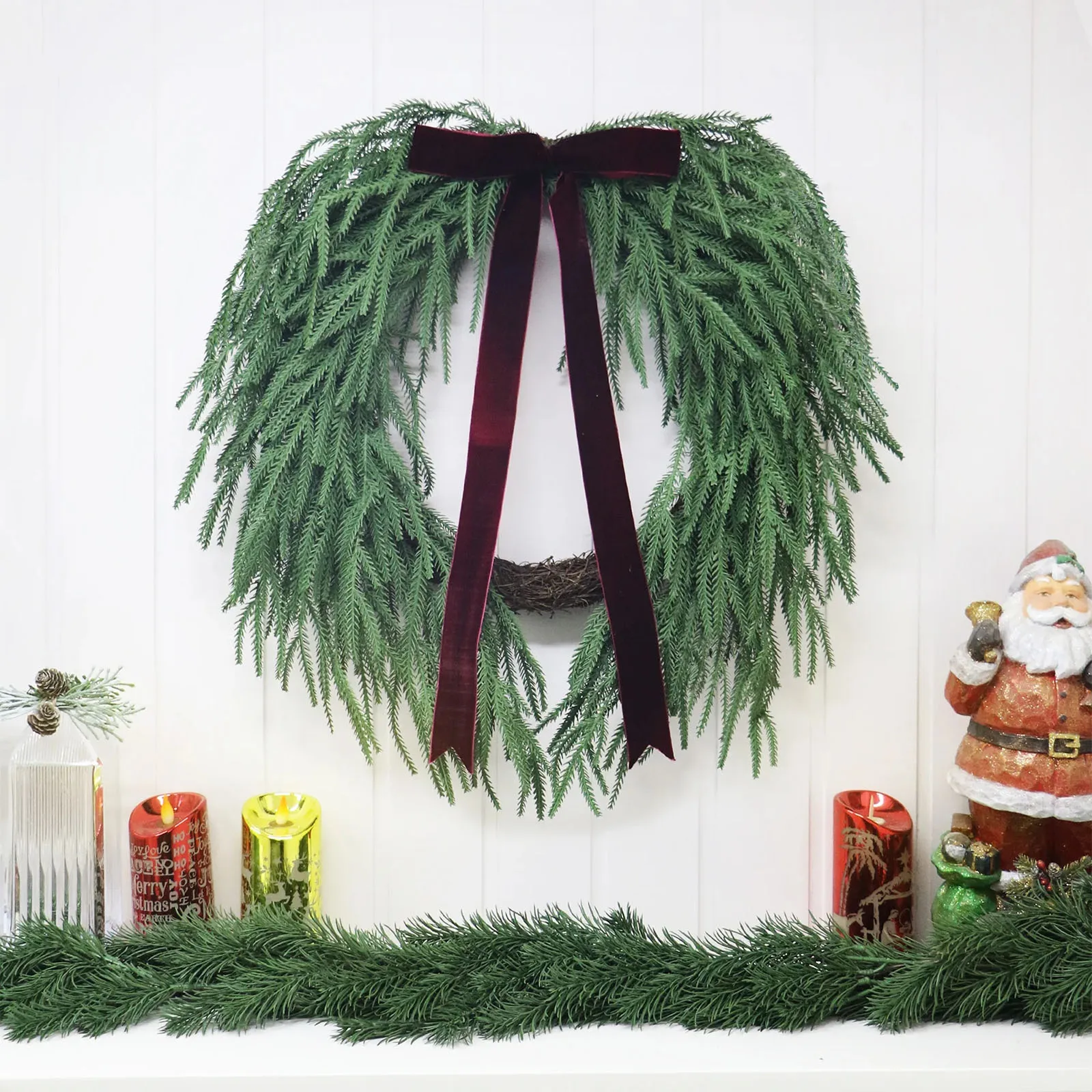Natural Feel Norfolk Artificial Christmas Wreath Green Artificial For Outdoor Home Garden Decor Christmas Decoration Artificial